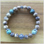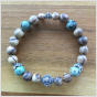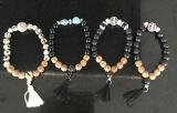 aus diversen Edelsteinen (schwarzer Tourmalin, Mondstein, Rosenquarz, Roter Achat, Orange Aventurin, Gelber Jaspis, Aventurin, Türkis, Afrikanischer Sodalith, Chevron-Amethy), Lavasteine, Howlith